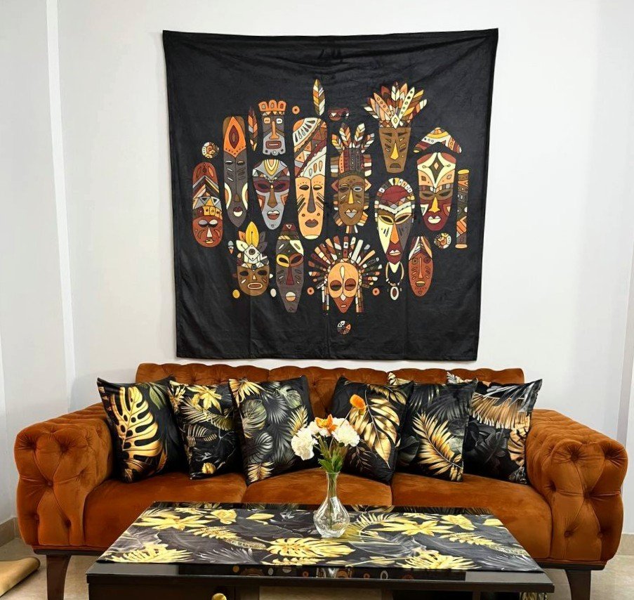 يأتي التابيستری مجهز للتعليق على الحائط عن طريق حلقات مثبته اعلى التابيستري