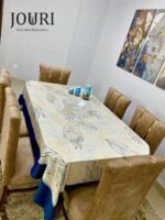 جدد ديكور منزلك بطقم كامل من الستائر، الكوشن، ومفرش السفرة، المصنوع من أجود أنواع القطيفة التركية ذات التصميم الراقي. الطقم يتميز بتصميم متناغم يضفي على المكان طابع أنيقاً وراحة بصرية ممتعة.