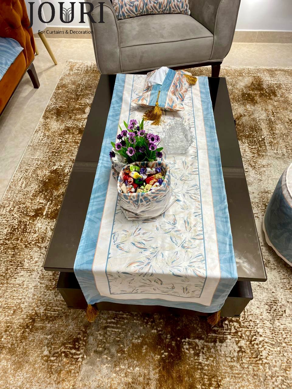 جدد ديكور منزلك بطقم كامل من الستائر، الكوشن، ومفرش السفرة، المصنوع من أجود أنواع القطيفة التركية ذات التصميم الراقي. الطقم يتميز بتصميم متناغم يضفي على المكان طابع أنيقاً وراحة بصرية ممتعة.