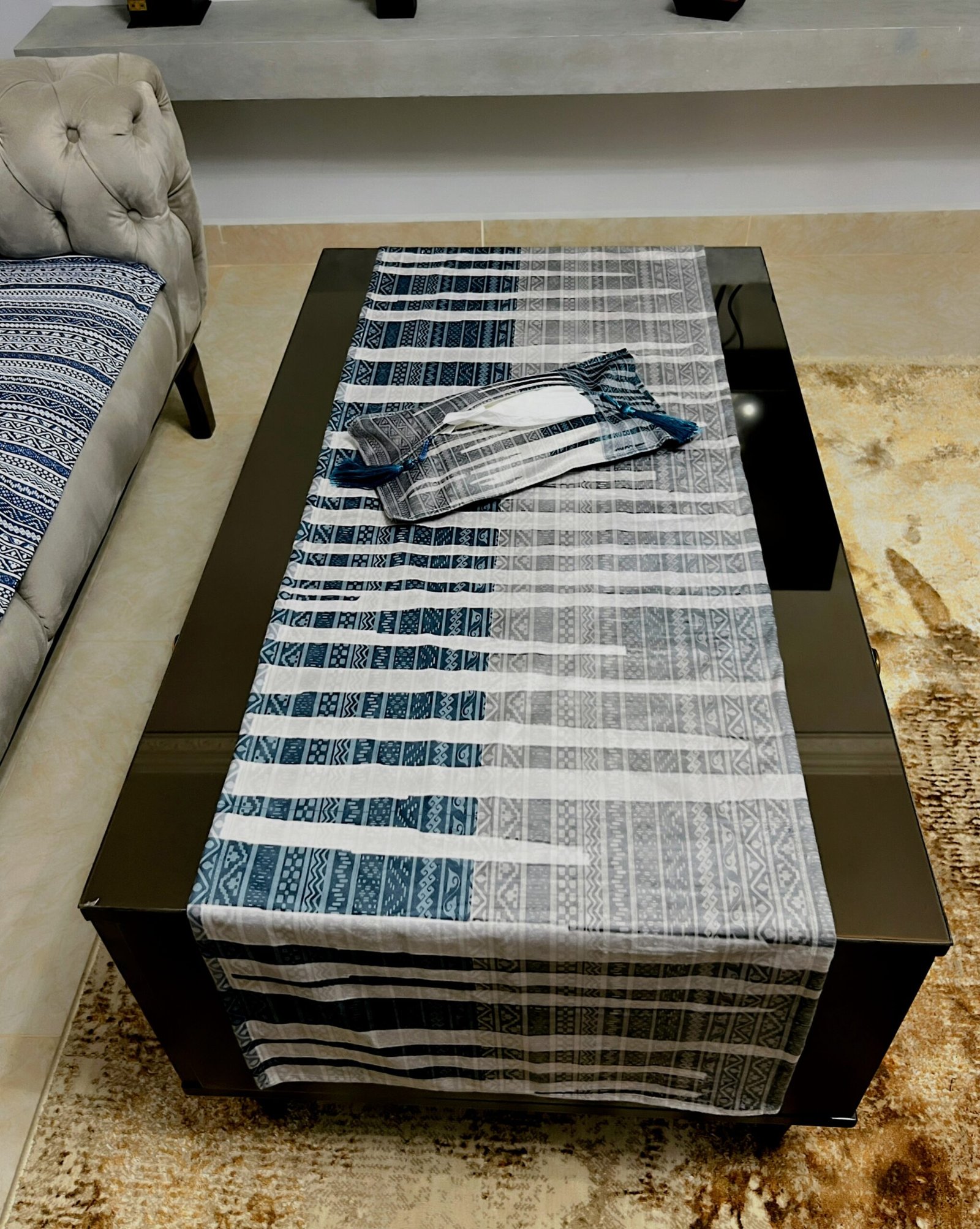 عزِّز ديكور منزلك بطقم كامل من الستائر، الكوشن، ومفرش السفرة، المصنوع من أجود أنواع القطيفة التركية ذات التصميم الراقي. الطقم يتميز بتصميم متناغم يضفي على المكان طابع أنيقاً وراحة بصرية ممتعة.